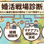 婚活戦場診断|どこで婚活すればいいかを簡単チェック! yoshi あなたに合う婚活の「戦場」診断 予算・時間・性格・希望に答えると、マッチングアプリ/結婚相談所/街コン・婚活パーティーのうち、あなたに合いそうな「戦場」をおすすめします。 あなたの状況を教えてください 年齢 20代 30代 40代 50代 年収帯(目安) 200万円未満 200万~399万円 400万~599万円 600万~799万円 800万円以上 婚活歴 これから始める 半年程度 1年 2年 3年以上 月に婚活に割ける時間 少ない(週に数時間まで) 普通 多い(しっかり取り組める) 月に使える婚活予算(目安) 〜1万円 〜3万円 〜5万円 それ以上 人見知り・初対面の苦手さ あまり気にしない やや苦手 かなり苦手 自分でプロフィールを書くのは? 書ける やや苦手 苦手・誰かに見てほしい いま一番の希望は? 短期で成婚したい まず出会いの数を増やしたい サポートしてほしい・相談に乗ってほしい とにかく手軽に始めたい 診断する 最初からやり直す こちらの各種診断も要チェック! 婚活スペック診断ツール 弱者男性度診断チェックツール 婚活タイムリミット診断 あなたのスペックと釣り合う女性タイプ診断ツール 婚活の高望み度チェックツール