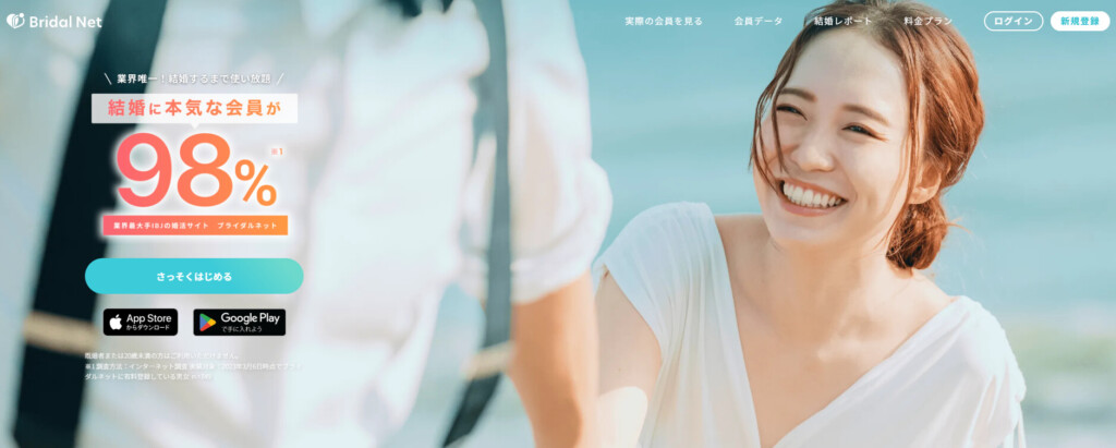 ブライダルネットは月額3,980円で始められる真剣婚活マッチングアプリ